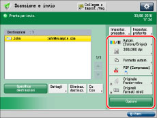 È possibile conservare le impostazioni di invio relative all'ultimo lavoro di invio. Per annullare le impostazioni, premere .Le destinazioni specifiche non vengono conservate. |