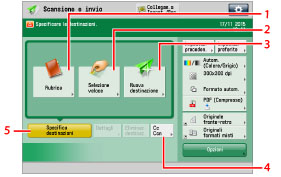 5 | [Specifica destinazioni] Utilizzare questo tasto per visualizzare i metodi per specificare le destinazioni o l'elenco delle destinazioni. |