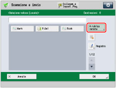 Per utilizzare i pulsanti di selezione veloce di una macchina server, è necessario specificare le impostazioni di [Acquisizione rubrica remota]. (Vedere "Acquisizione della rubrica remota".) |