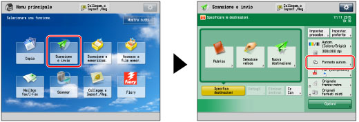 → [Scansione e invio] → premere il pulsante del formato di scansione.