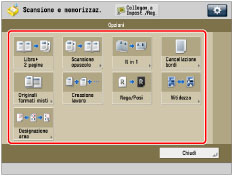 Per annullare la scansione, selezionare [Annulla] o .Quando sono alimentati più fogliLa scansione è arrestata e il messaggio è visualizzato sullo schermo. Seguire le istruzioni per l'eliminazione dell'inceppamento. Una volta eliminato l'inceppamento, è visualizzata la schermata di ripresa del processo. Se la macchina rileva in errore l'alimentazione di più fogli, premere [Non rilevare alimentazione di più fogli] per riprendere la scansione. Per impostare la macchina in anticipo per non avvisare dell'alimentazione di più fogli, eseguire una delle seguenti operazioni. Ogni volta che si effettua un invio, premere [Opzioni] sulla schermata delle funzioni principali fax → selezionare [Ril. alim. più fogli aliment.] per disabilitare l'impostazione. Impostare [Impost.rilev.alim.più fogli da alim.come def.] a [Off]. Modifica dell'impostazione predefinita del rilevamento dell'avanzamento fogli multipli |