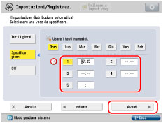 Premere [Impostazione distribuz. automat.] per <Impostazioni trasmissione> → selezionare [Tutti i giorni] o [Specifica giorni].