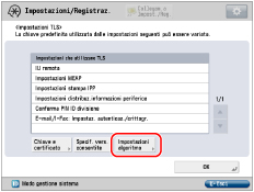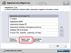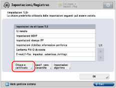 Dopo avere controllato la funzione per la quale si utilizzano comunicazioni TLS crittografate, è possibile impostare la coppia di chiavi in uso.