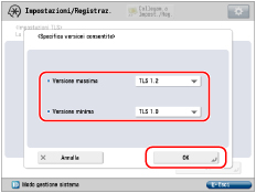 Specificare [Versione massima] e [Versione minima]. → Premere [OK].
