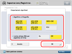 Selezionare l'algoritmo di crittografia e la restrizione DSA da utilizzare. → Premere [OK].