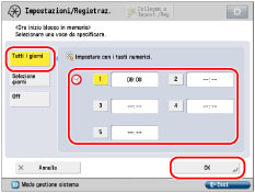 Se si seleziona [Tutti i giorni], specificare un numero (da [1] a [5]) → immettere l'ora di fine con