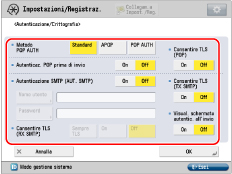 Premere [Autenticaz./ Crittografia] → impostare <Consentire TLS (RX SMTP)> → premere [OK].