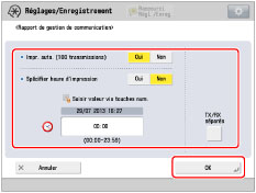 Sélectionner [Oui] pour que le Rapport de gestion des communications s'imprime automatiquement lorsque le nombre de transmissions (envoi et réception) atteint 100.