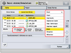 Dérouler la liste → sélectionner le réglage souhaité→ appuyer sur [Imprimer la liste].