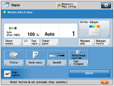 Les bobines de nettoyage des parties de fixation principale et secondaire sont remplacées selon la même méthode. Cette section explique la méthode remplacement de la partie de fixation principale. La partie de fixation et le levier permettant de la retirer sont illustrés sur la figure ci-dessous. ![]() *1 : Partie de fixation principale (C-A4) *2 : Partie de fixation secondaire (C-B4) Préparer une nouvelle bobine de nettoyage avant de démarrer le processus de remplacement. Appuyer sur [Précédent] et [Suivant] affiché sur l'écran tactile pour revoir le processus de remplacement. Les tâches interrompues par le remplacement de la bobine de nettoyage reprenne automatiquement après le remplacement. |