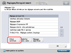 Sélectionner la biclé à utiliser pour les communications cryptées TLS→ appuyer sur [Définir en clé par déf.].