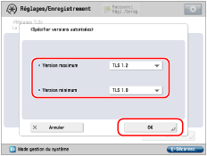 Spécifier [Version maximum] et [Version minimum]. → Appuyer sur [OK].
