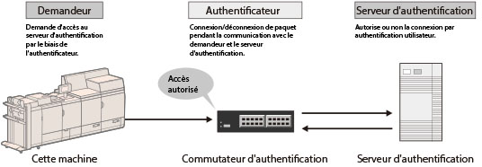 L'authentificateur bloque les communications du demandeur qui n'est pas authentifié par le serveur RADIUS. Pour plus d'informations, voir le manuel du imagePRESS Server.