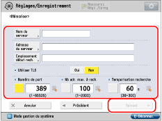 Appuyer sur [Adresse du serveur] → entrer l'adresse du serveur → appuyer sur [OK].