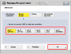 Sélectionner un élément pour [Version du serveur LDAP et code des caractères] → appuyer sur [OK].