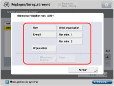Seuls les deux attributs de recherche affichés par défaut comme "Non mémorisé" peuvent être modifiés. Il est impossible de modifier les attributs de nom, d'e-mail, d'organisation et d'unité d'organisation. |