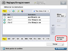 . Pour afficher les destinataires qui ne sont pas gérés par des numéros d'accès, appuyer sur [Adresses sans numéro d'accès].