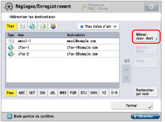 Appuyer sur [Définir destinataire] → [Mémoriser les destinations] → [Mémor. nouv. dest.].