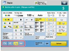 (Voir "Activation de l'écran des fonctions de base du mode Copie normale".)Il est possible d'enregistrer jusqu'à six raccourcis souhaités dans [Options].