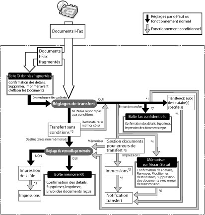 *7 | Il est possible d'enregistrer les fichiers reçus I-Fax dans la boîte fax confidentielle en la sélectionnant comme destinataire du transfert. |