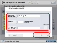 sont utilisées pour saisir un numéro de boîte fax confidentielle, veiller à entrer un nombre à 2 chiffres → appuyer sur [OK].