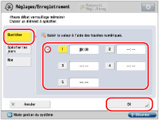 Il est possible de choisir [Quotidien] pour Heure début verrouillage mémoire et [Spécifier les jours] pour Heure fin verrouillage mémoire, et vice versa. |