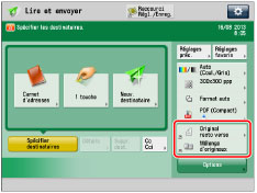 Il est possible de mémoriser des touches de raccourci à afficher à l'écran d'envoi. Deux touches souhaitées peuvent être mémorisées dans [Options].