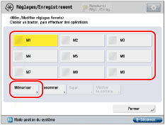 Sélectionner un bouton ([M1] à [M9]) pour mémoriser des réglages → appuyer sur [Mémoriser].