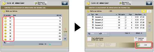 Sélectionner la boîte aux lettres voulue → appuyer sur [Lire].