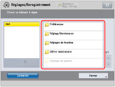 Une fois la définition des réglages terminée, appuyer sur [Déconnex.] dans la partie inférieure droite de l'écran pour se déconnecter.