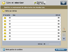 Il est possible de régler les paramètres d'affichage de l'emplacement de mémorisation qui s'affiche lors de l'activation de [Lire et mémoriser] ou [Accès fich. enregistrés].