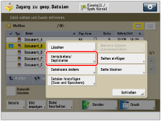 Um eine Datei zu duplizieren, berühren Sie die Taste [Duplizieren].
