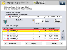 Wenn Sie mehrere Dateien wählen und die Taste [Seiten einfügen] berühren, wird die ausgewählte (markierte) Datei zu der Datei, die eingefügt wird. |
