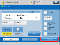 一次最多可以选择和打印一个存储箱中的32个文件。如果合并文件,则最多可以选择和打印100个文件。但是,如果存储箱中有预约作业,可以选择和打印的文件数量会根据所保留的文件数量而有所差异。 只有当多个文件存储在同一个存储箱中时,才能选择多个文件。要打印存入不同存储箱的多个文件,需要事先将文件移动到同一个存储箱中。(请参阅“移动/复制文件”) 如果要以存储文件时的设置打印从计算机存入本机或使用“复印”功能的 [存储在存储箱中] 存入本机的文件,请勿从“更改打印设置”屏幕打印文件。如果从“更改打印设置”屏幕打印文件,则可能不会以与文件存入时设置的相同设置打印文件。 如果本机不支持从计算机发送到存储箱的文件的打印设置,则无法打印输出该文件。如果出现这种情况,请删除存储箱中的文件,在计算机上指定本机支持的设置,然后将文件再次发送到存储箱。 要取消所有设置,按 [恢复默认设置]。 有关如何添加纸张的信息,请参阅 “添加纸张”。 |