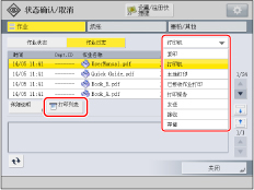 按下拉列表 → 选择要打印的作业类型 → 按 [打印列表]。