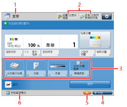 有关可设置为在本机启动后显示的屏幕的信息,请参阅 “启动/恢复后的默认屏幕”。 根据用户的权限,可以指定的设置可能会有所不同。 有关注册和编辑“常用设置”的详细信息,请参阅以下内容: 注册/编辑/删除常用设置按钮 对于复印 注册/编辑/删除常用设置按钮 对于扫描后发送 注册和编辑常用设置 对于存取已存储文件 注册和编辑常用设置 对于扫描后存储 有关注册“选项”和“常用设置”的快捷键的详细信息,请参阅以下内容: 注册快捷键 对于复印 注册快捷键 对于扫描后发送 |