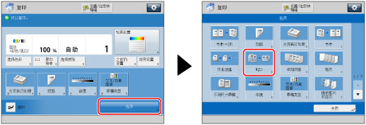 如果要执行双面复印,按 [双面设置] → 选择双面复印的类型 → 按 [确定]。