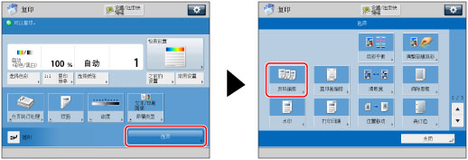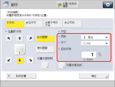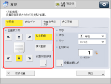 要在执行双面复印时设置反面的打印位置,选择 [与正面相反] 或 [与正面相同] → 按 [确定]。