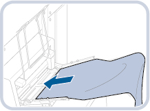 如果显示提示调整滑动导板或检查“设置/注册”中的 [长尺寸多功能托盘默认值] 的屏幕,调整滑动导板的宽度以适合存储在 [长尺寸多功能托盘默认值] 中的纸张尺寸,或将“设置/注册”的 [参数选择] 中的 [长尺寸多功能托盘默认值] 设置为“关闭”。(请参阅“注册加长纸手送托盘默认值”) ![]() 如果纸张包装上有关于纸张添加面的说明,请按照这些说明进行操作。 将纸张添加到“加长纸手送托盘-D”中时,向上的一面为打印面。 如果出现问题,如打印质量不佳或卡纸,尝试翻转纸叠并将其重新装入。但是,不能翻转纹理纸和单面覆膜纸。请更换新纸张。 |