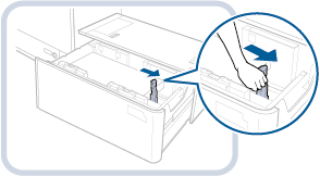 检查加长纸纸叠是否与左侧壁齐平。 ![]() 滑动右尺寸更改板(外部)时,请小心,因为纸张可能滑到板下。 |