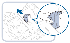 将标签纸添加到纸仓中时,需要安装“标签供给附件-E”(可选)。 “POD纸仓-D”安装了“标签供给附件-E”。按照以下说明将其分离。 打开 POD 纸仓的右前盖板。 ![]() 按标签区域,取出标签纸的附件。 ![]() 关闭 POD 纸仓的右前盖板。 |