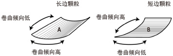纸张的硬度取决于纸张纹理的方向。纸张卷曲往往发生在与纹理平行的方向。