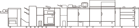 安装了“裁边器-F”、“鞍式分页装订处理器-AN”、“折纸组件-J”、“大容量堆叠器-H”、“文件插页器-N”、“POD纸仓-D”和“竖屏控制显示器”。