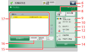 15 | [删除接收方] 按下可以删除接收方列表中显示的接收方。 |