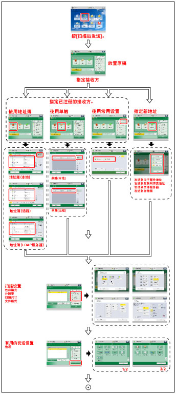 为了将扫描文档发送至电子邮件地址、互联网传真地址或文件服务器,必须指定网络设置。(请参阅“电子邮件/互联网传真常规通信设置”) |