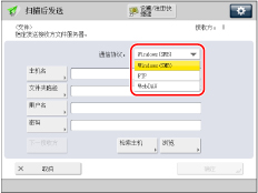 也可以通过从下拉列表按 [目录] 从本机中注册的 Active Directory 服务器域名列表中选择工作组。