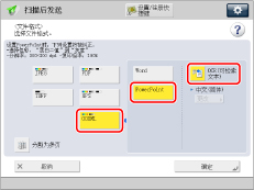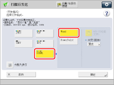 如果选择“PDF (OCR)”、“XPS (OCR)”或“OOXML (OCR)”作为文件格式,并且将“设置/注册”中的 [OCR(可检索文本)设置] 的 <智能扫描> 设置为“打开”,则会检测原稿的方向,并且必要时在发送前自动旋转文档。(请参阅“创建可检索 PDF/XPS/OOXML 的设置”) 如果选择 [OCR(可检索文本)],则只能以 [1:1(100%)] 或 [自动] 的缩放倍率发送。 如果选择 PDF 或 XPS 作为文件格式,可以同时设置 [压缩] 和 [OCR(可检索文本)]。在这种情况下,“扫描后发送基本功能”屏幕上显示的文件格式为 [PDF(压缩)] 或 [XPS(压缩)]。 如果为 [OOXML] 选择 [Word],可以设置为删除已扫描的背景图像。可以生成没有多余的图像且易于编辑的Word文件。(请参阅“生成 Word 文件时删除背景图像”) |