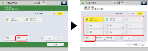 按 [编辑] → 选择要删除的按钮 → 按 [删除]。