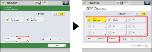 按 [编辑] → 选择要编辑名称或注释的按钮 → 按 [重新命名]。