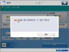 [允许黑白复印/打印作业] 设置为“打开”时,如果在“复印基本功能”屏幕上按 [黑白复印/打印] 登录,会显示提示只能进行黑白复印的信息。